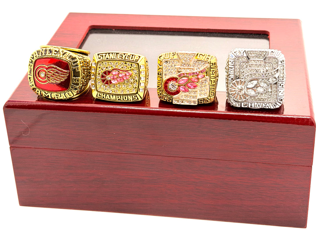 NHL / 1997 1998 2002 2008 Detroit Red Wings Stanley Cup Championship Rings Set With wooden box